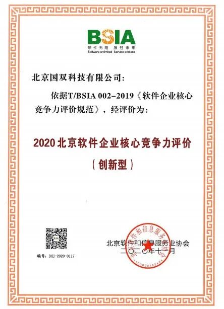 国双再次通过北京软件企业核心竞争力评价(创新型)